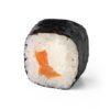 Skrudinta lašiša, tempūroje keptos krevetės, sūris, avokadas, agurkas, oranžiniai ikrai, teriaki padažas.