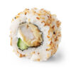 Tempūroje kepta krabų lazdelė, keptas ungurys, agurkas, sūris, juodi ir oranžiniai ikrai, teriaki padažas, sezamo sėklos.