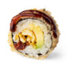 Tempūroje kepta krabų lazdelė, keptas ungurys, agurkas, sūris, juodi ir oranžiniai ikrai, teriaki padažas, sezamo sėklos.